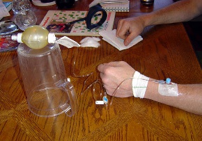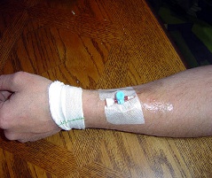Sure enough, the hospital fitted us out with a set of little IV pods for us to take home.